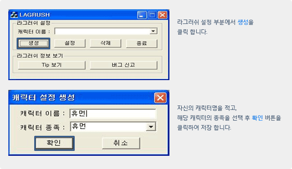 ¶ó±×·¯½¬¸¦ »ç¿ëÇÒ Ä³¸¯Å͸í°ú Á¾Á·À» ¼±Åà ÇÕ´Ï´Ù.