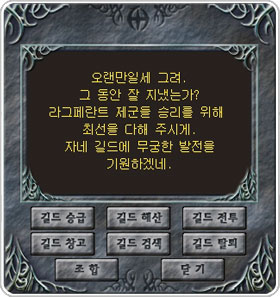 ±æµå â¼³Àº 150·¹º§ ÀÌ»óÀÇ ¸ðµç ij¸¯Å͵éÀº ¶ó±×¶ó¹Ì¾Æ ±¤Àå¿¡ À§Ä¡ÇÑ ±æµå °ü¸® NPCÀÎ ¶ó±×Æä¶õÆ® ÃÑ»ç°üÀ» ÅëÇØ¼­ â¼³À» ÇÒ ¼ö ÀÖ½À´Ï´Ù.
