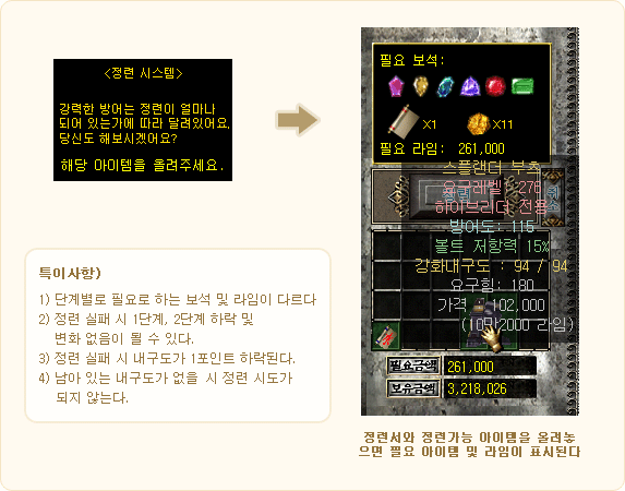 Á¤·Ã½Ã½ºÅÛÀº Á¤·ÃÀÌ °¡´ÉÇÑ ¾ÆÀÌÅÛÀÌ º°µµ·Î Á¸Àç Çϸç, ¾ÆÀÌÅÛ¿¡ µû¸¥ Á¤·Ã °¡´É ´Ü°èµµ Á¤ÇØÁ® ÀÖ½À´Ï´Ù.